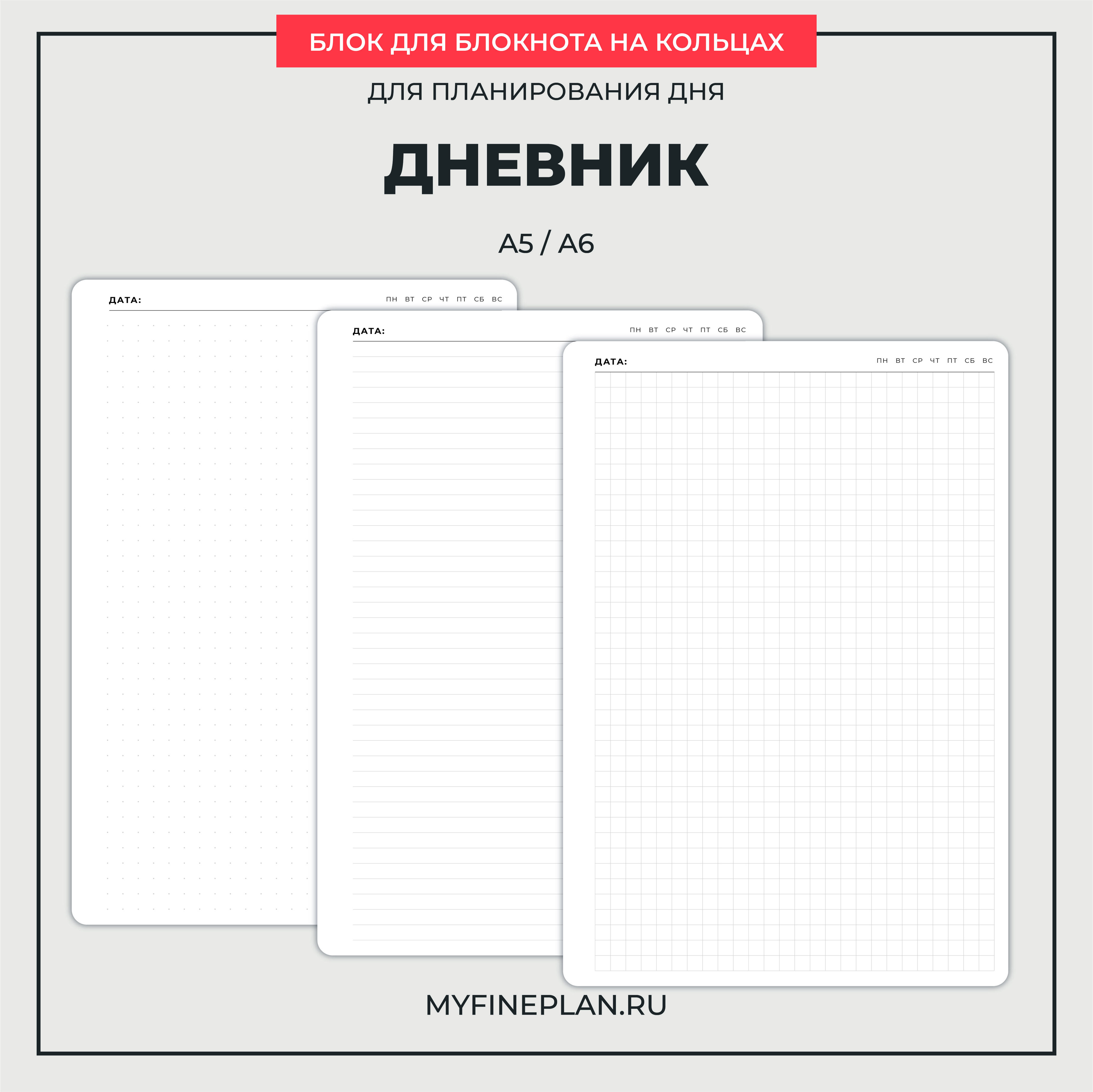 Блок для дневника или свободного ежедневника. На 60 дней или 2 месяца.