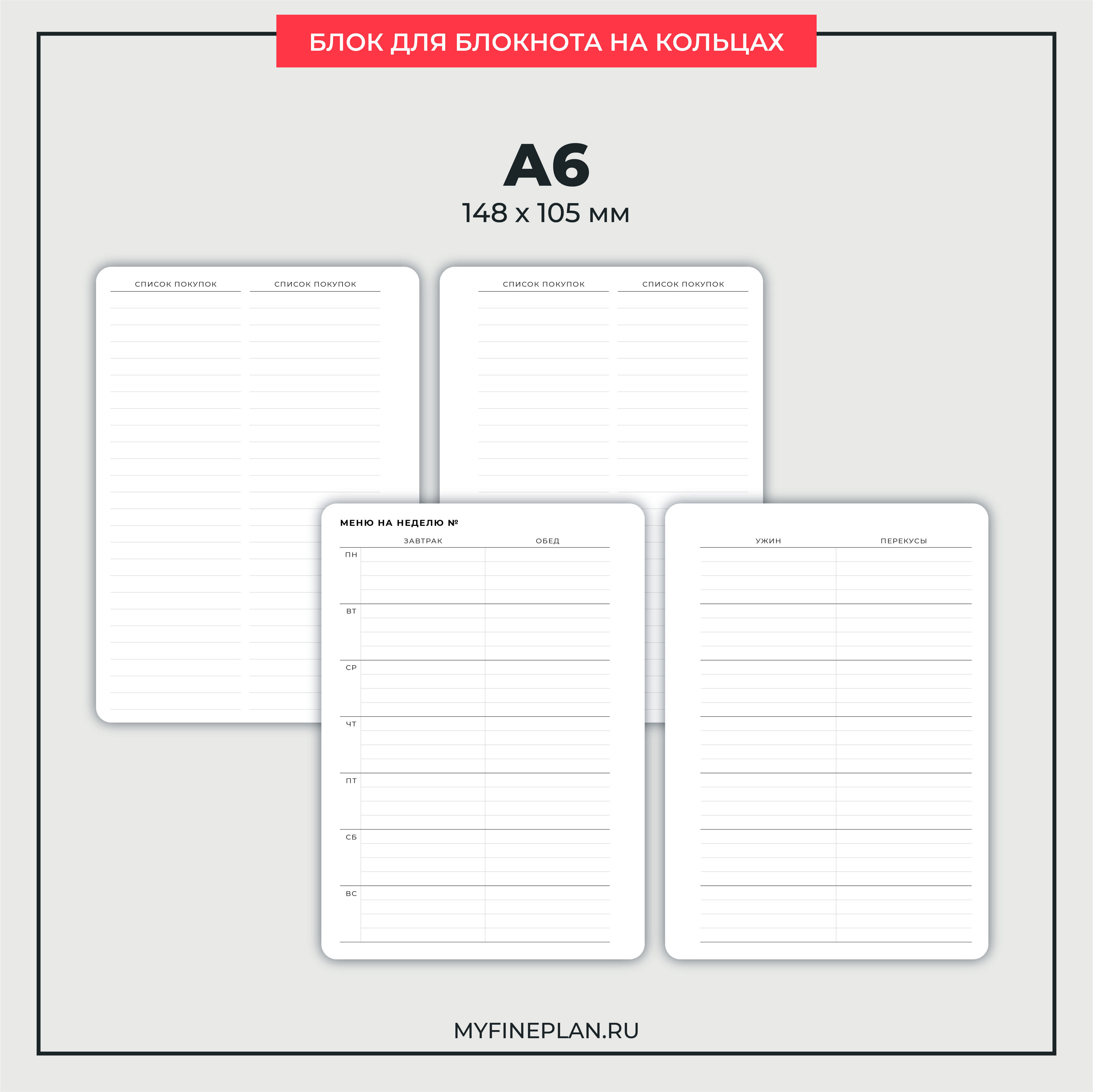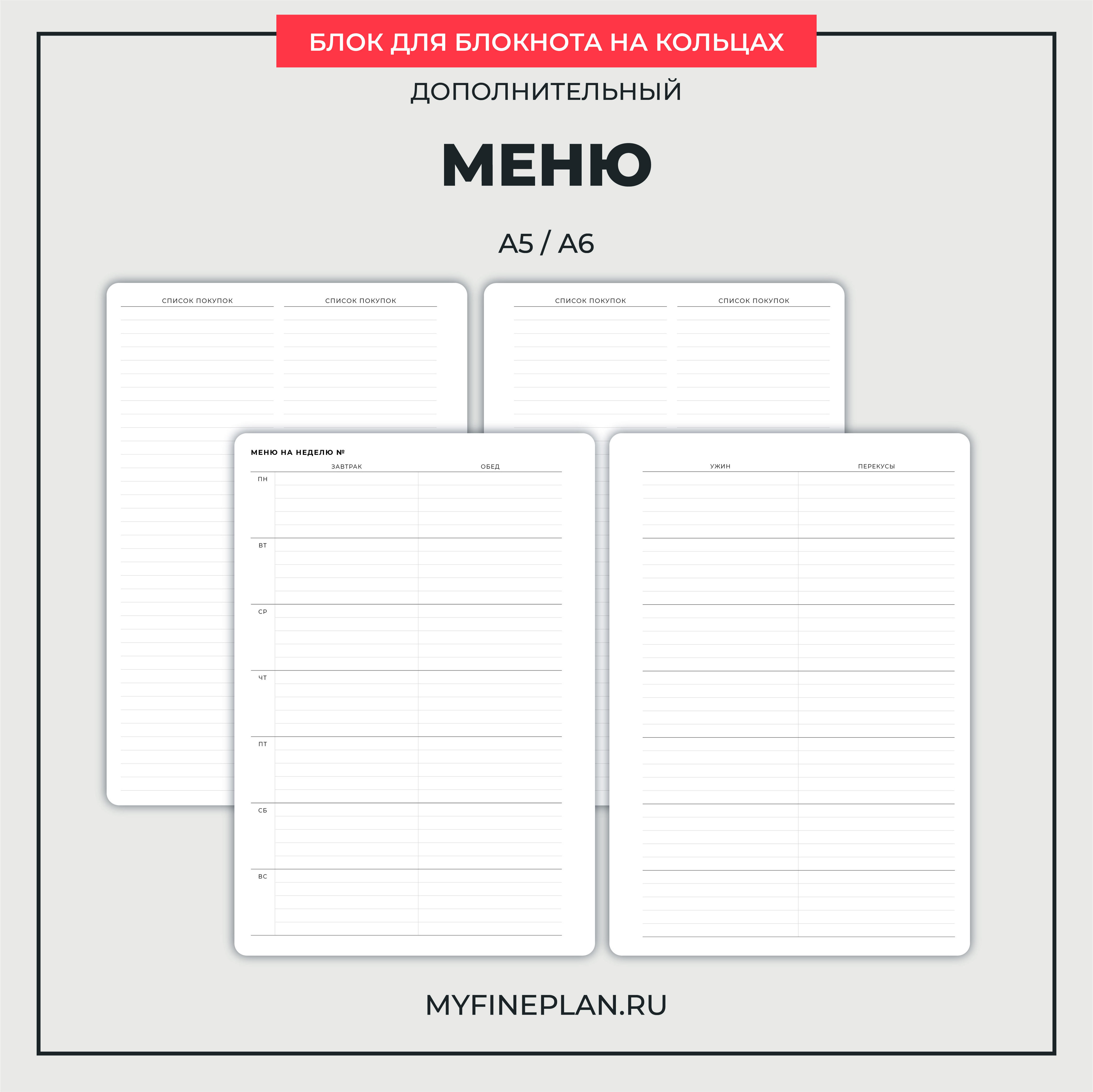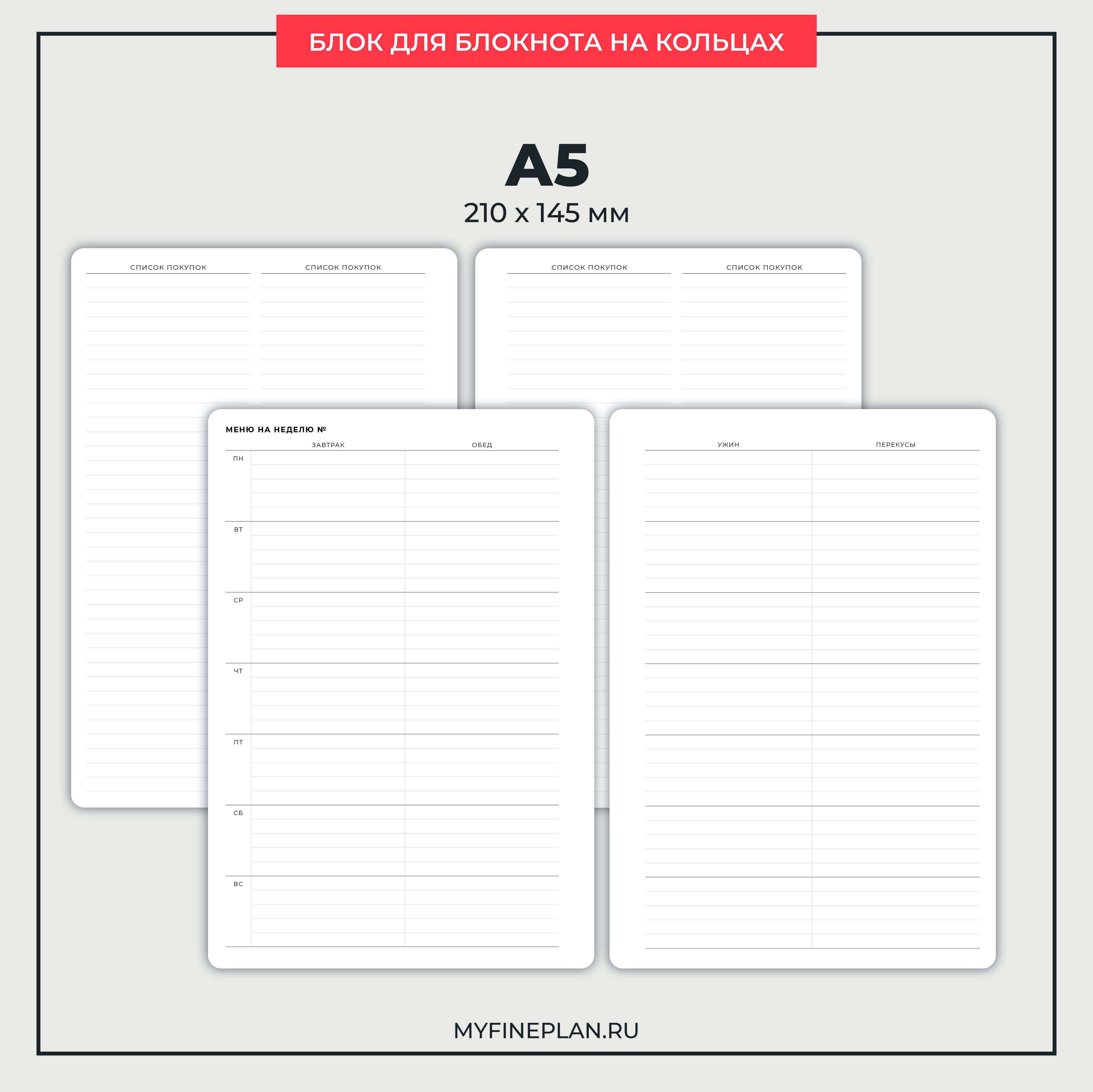 Сменный блок для составления меню на неделю и списка покупок. Недатированный, можно начинать вести в любое время.
