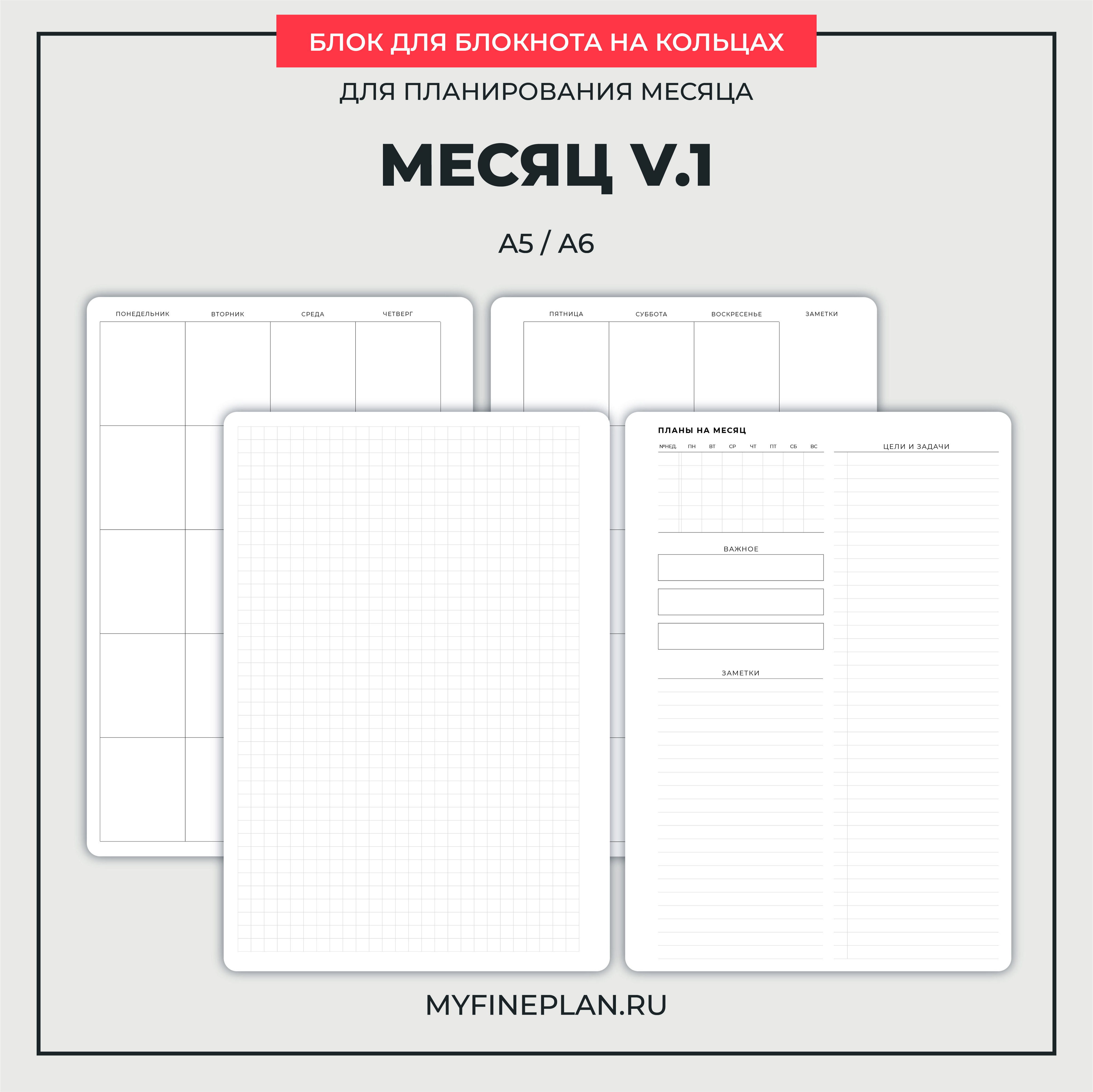 • Недатированный разворот на месяц (таблица с неделями + заметки)