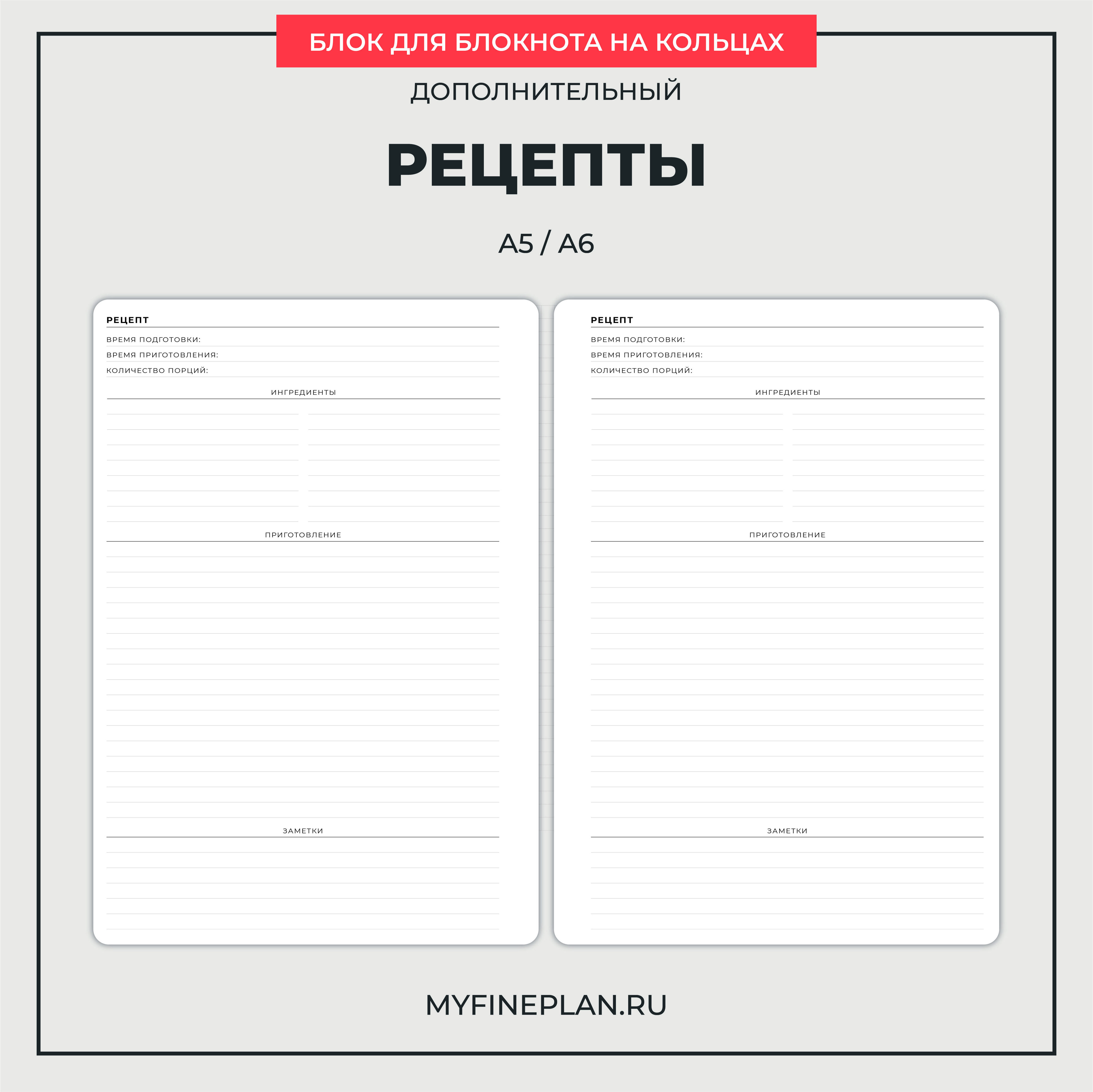 Блок для рецептов. 60 страниц - 60 рецептов.