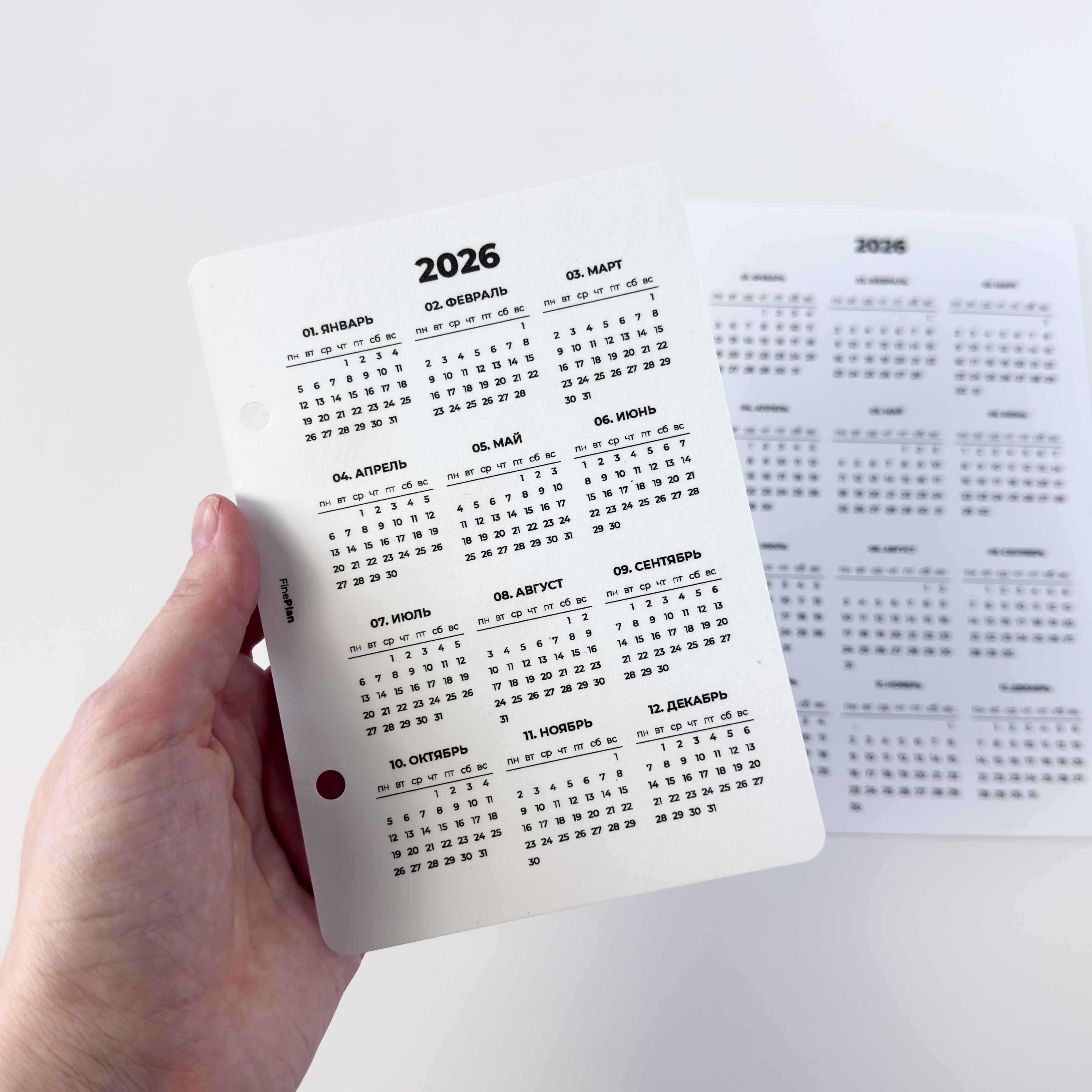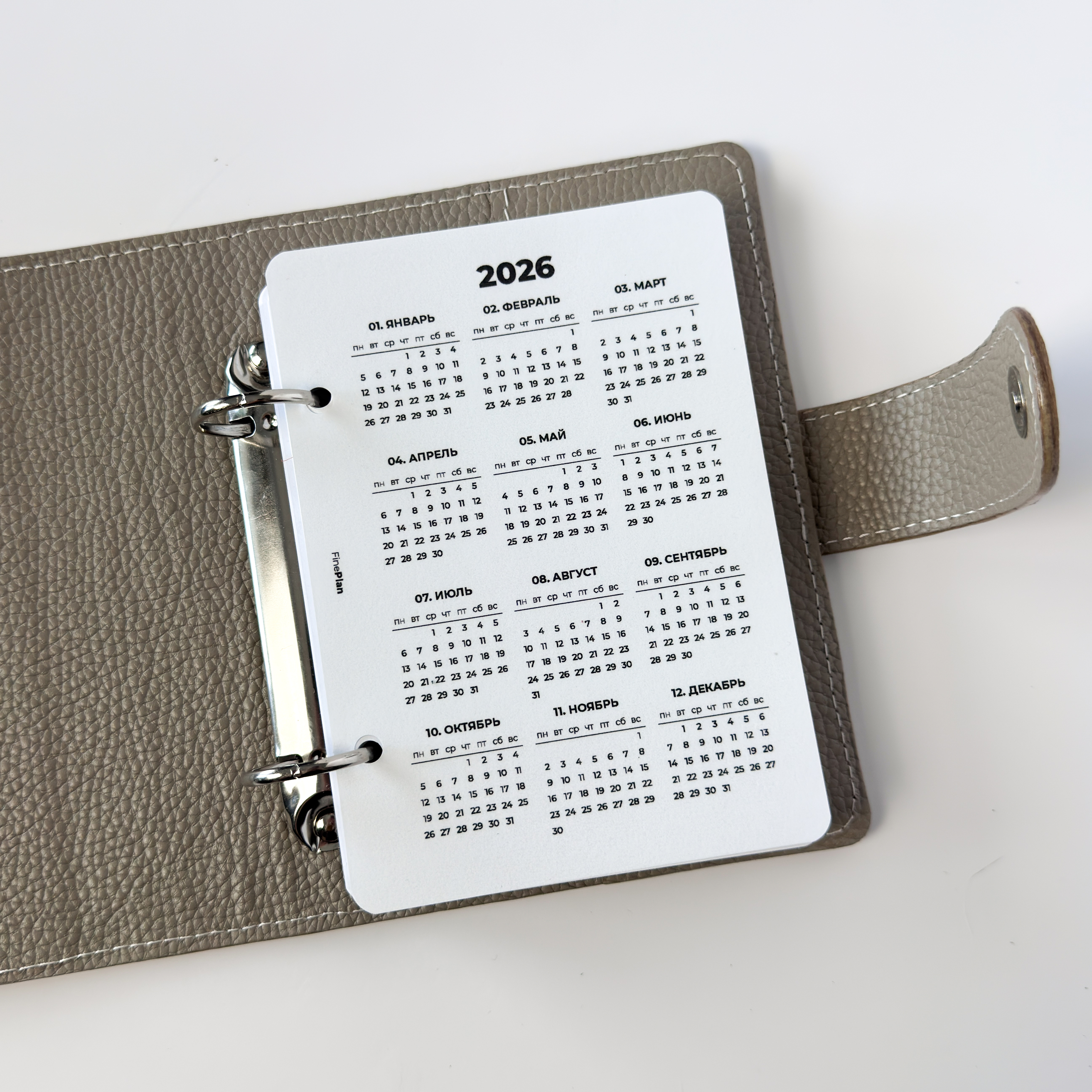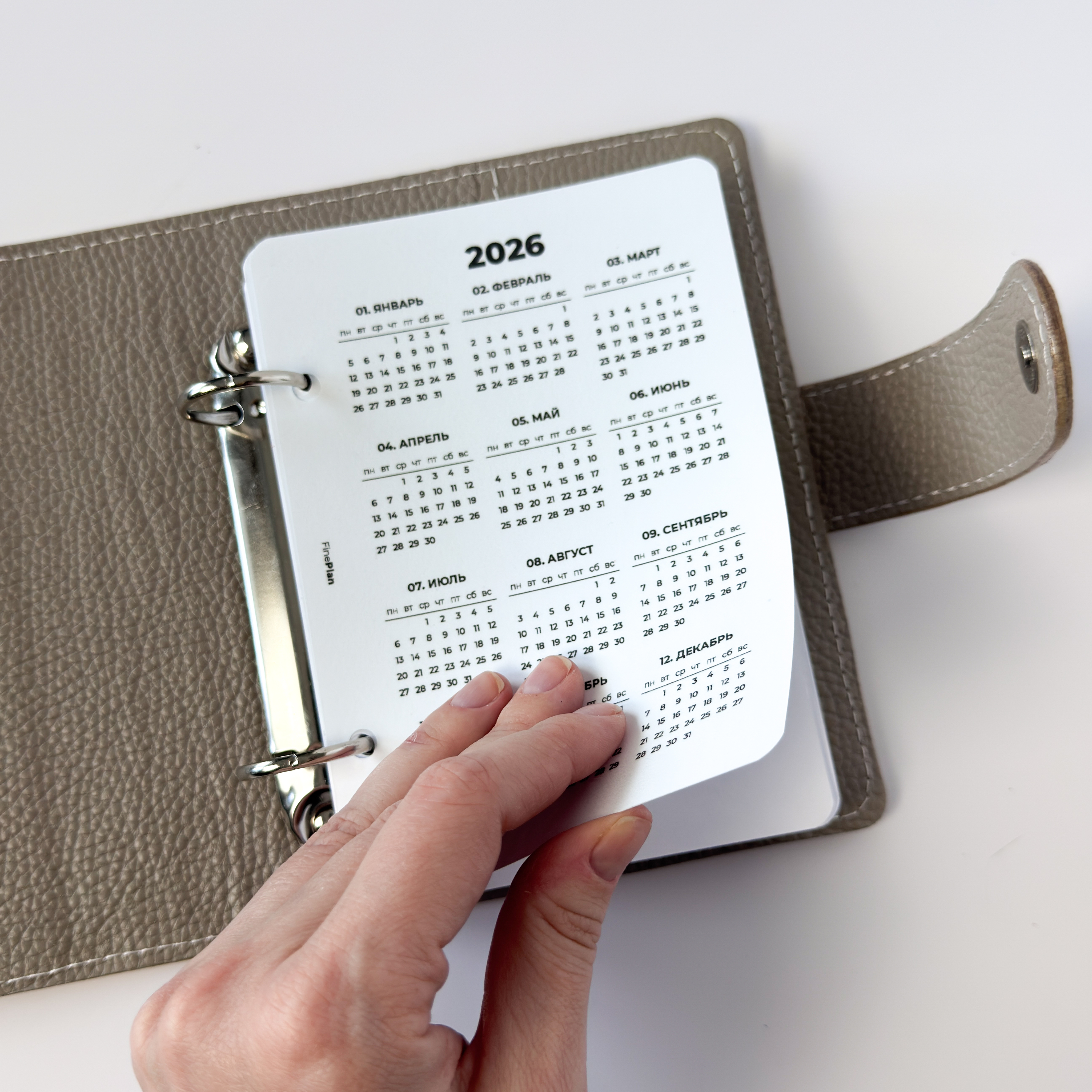 Надёжный и аккуратный помощник для планирования. Этот прочный разделитель с календарём удобно впишется в ваш блокнот — всегда под рукой, когда нужно свериться с датой.