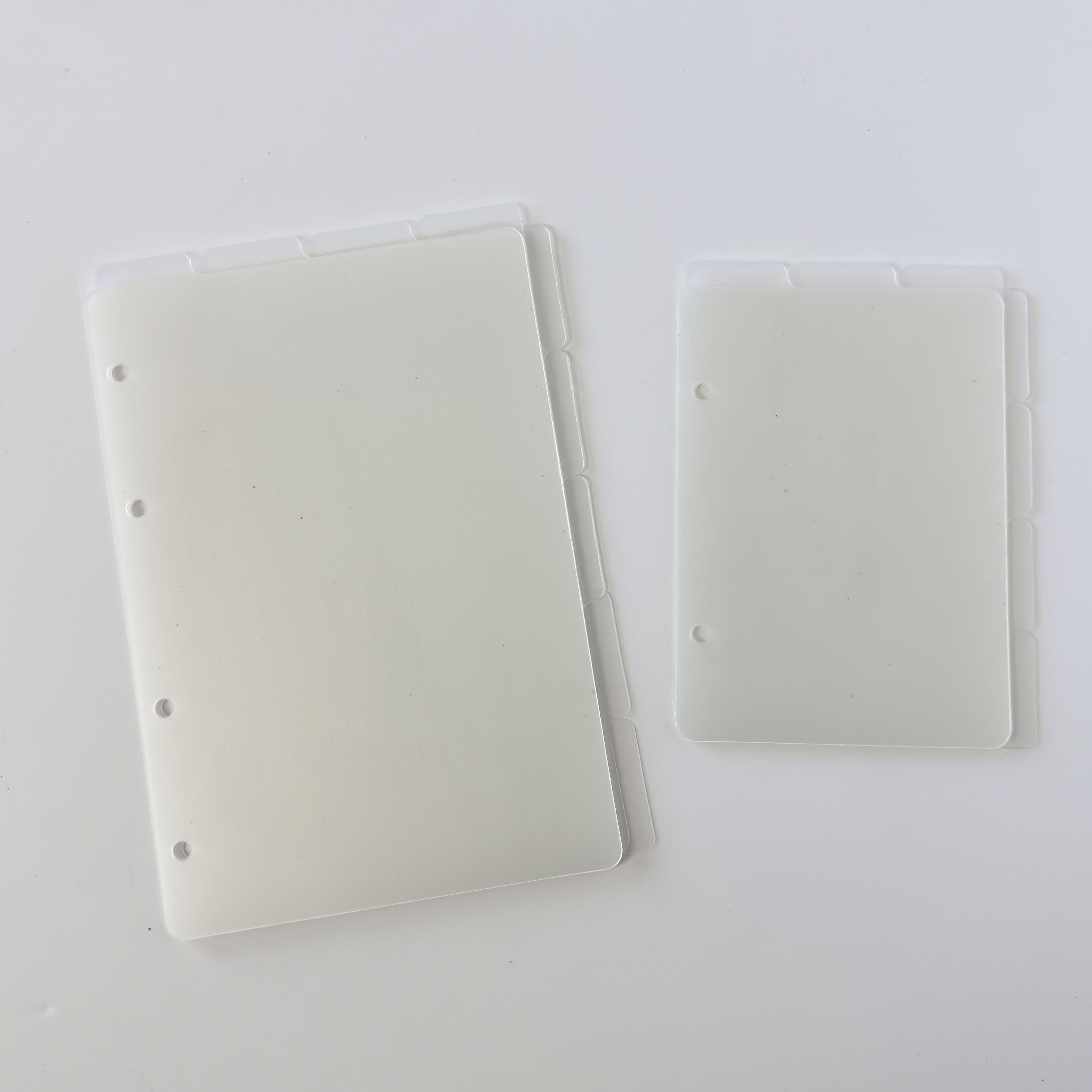 Лёгкие, аккуратные и надёжные. Эти разделители из матового пластика помогут удобно организовать записи, не утяжеляя блокнот. Полупрозрачные, но достаточно плотные — всё видно, но ничего не мешает.