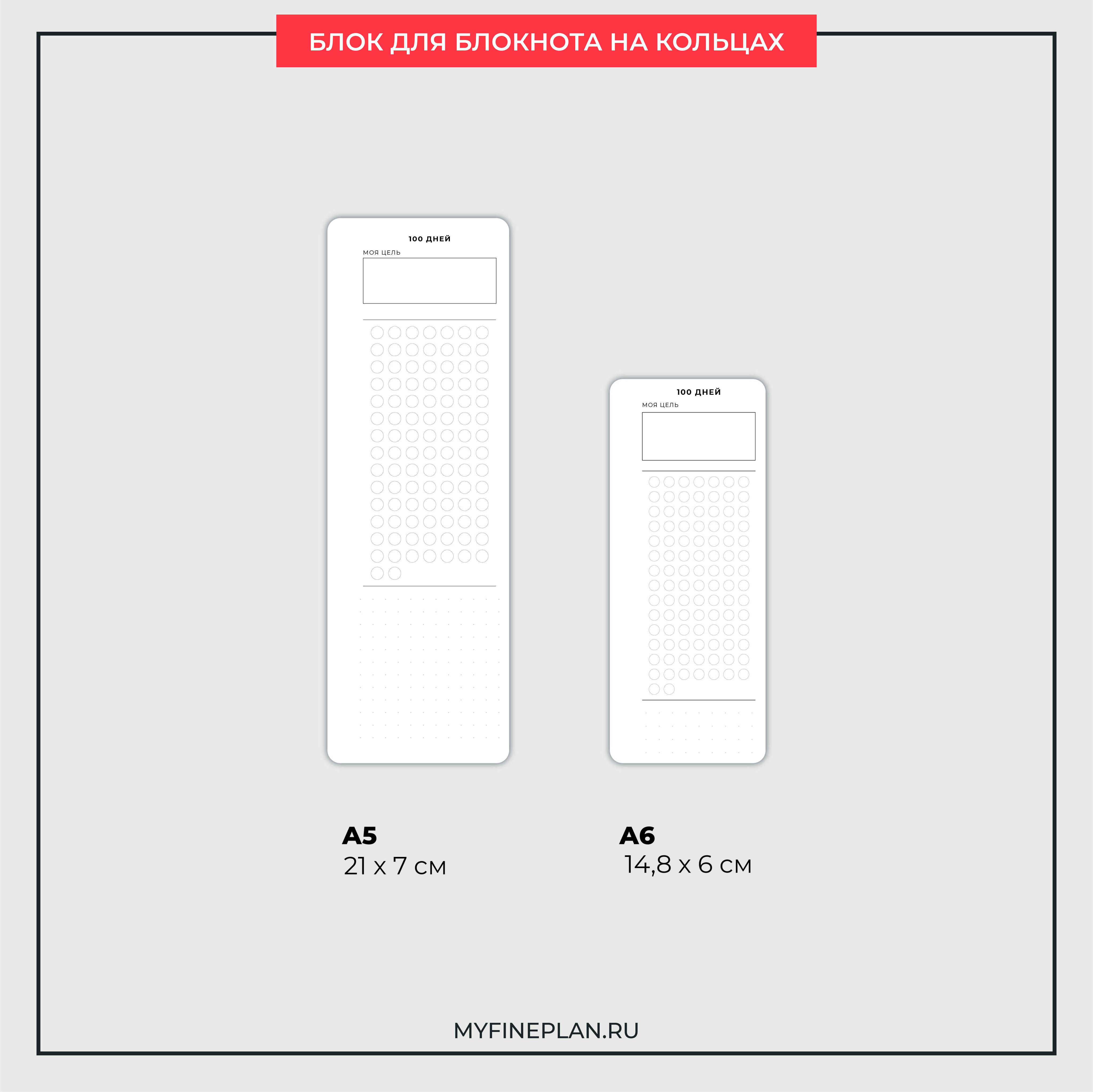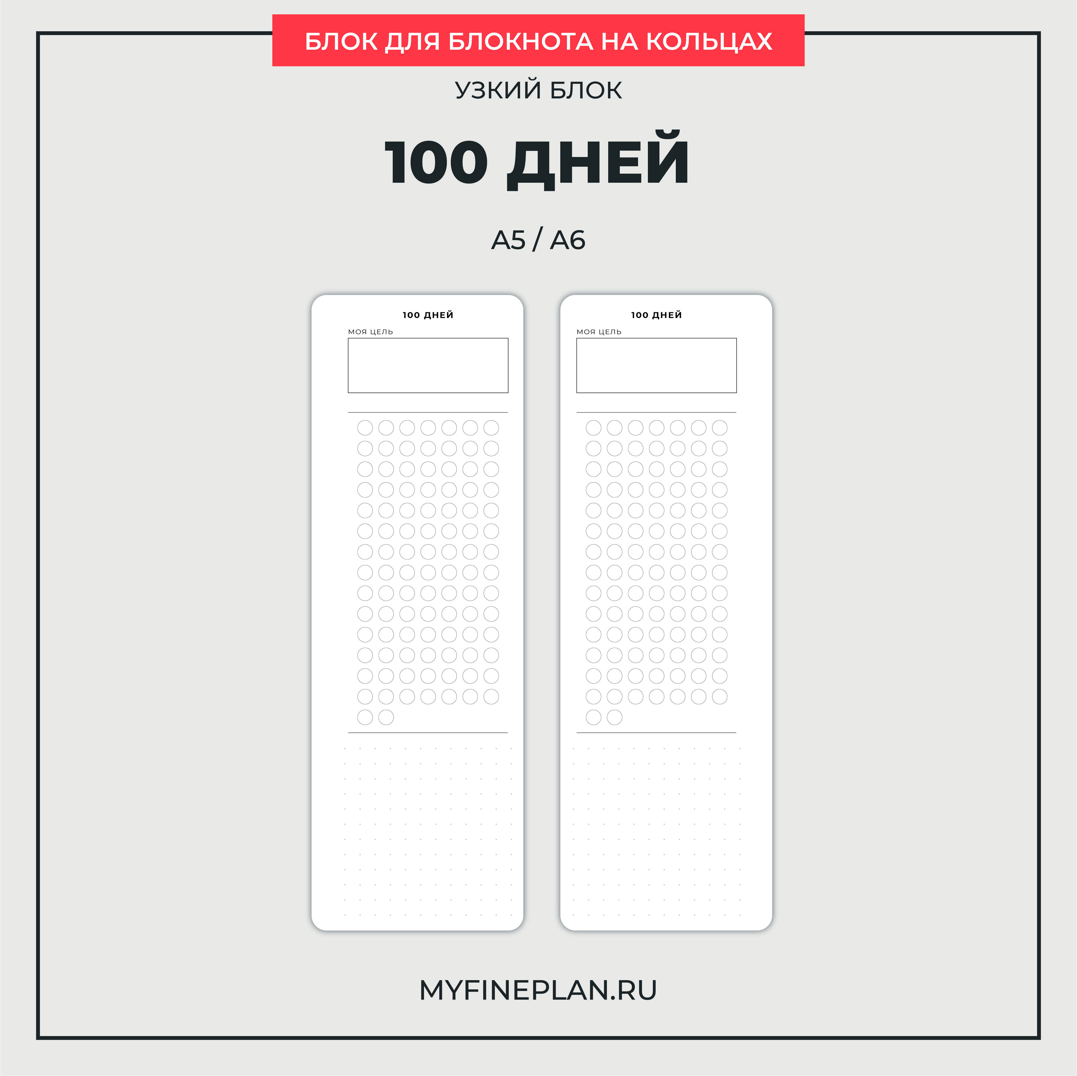 Дополнительный узкий блок с трекером на 100 дней на обоих сторонах листа.